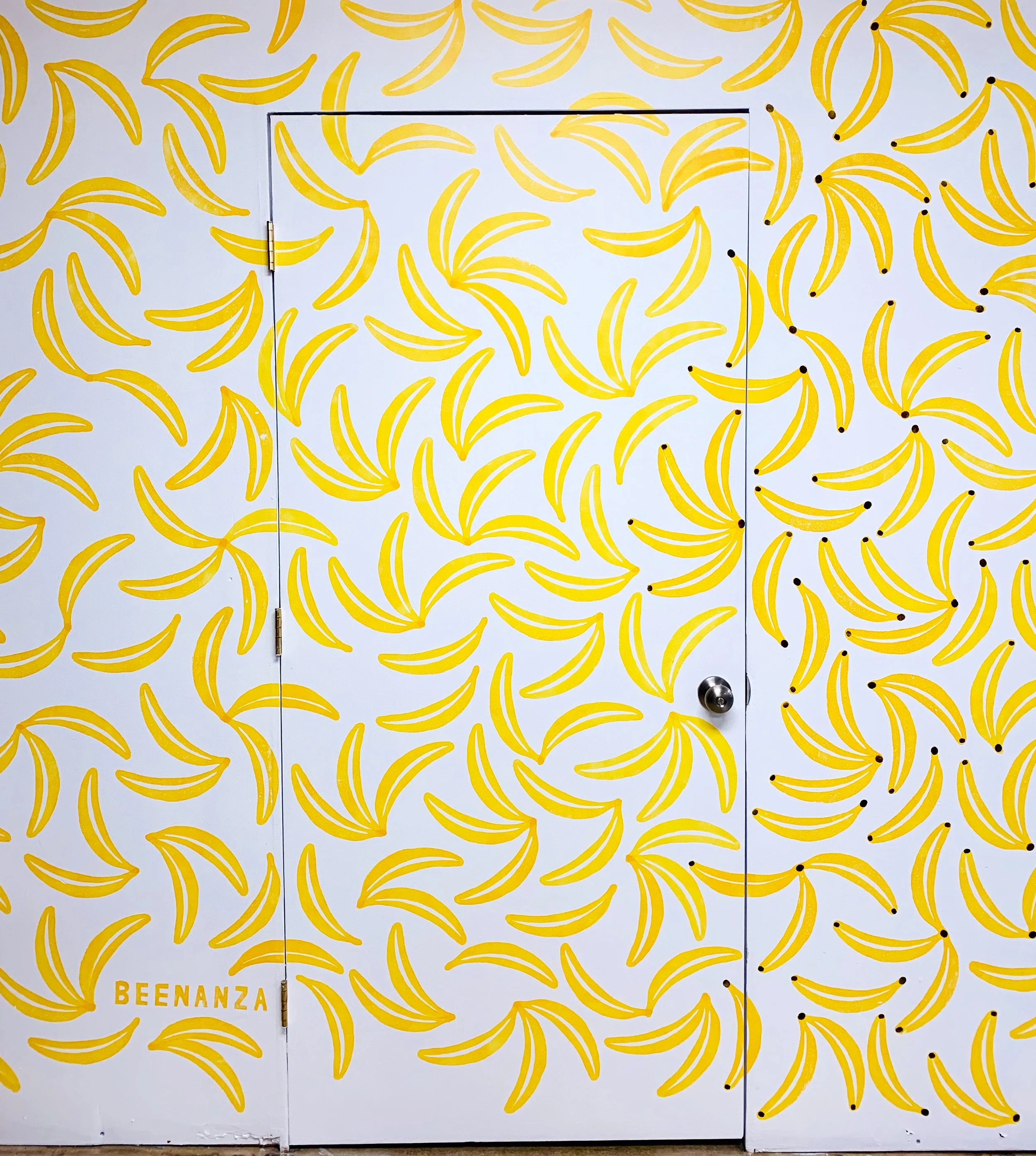 What a total treat to spend a week with the team at Momo's market covering the walls with block-printed BANANAS!